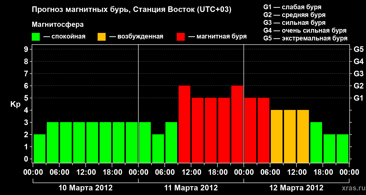 Прогноз магнитных бурь локации Станция Восток — 10 марта 2012 года
