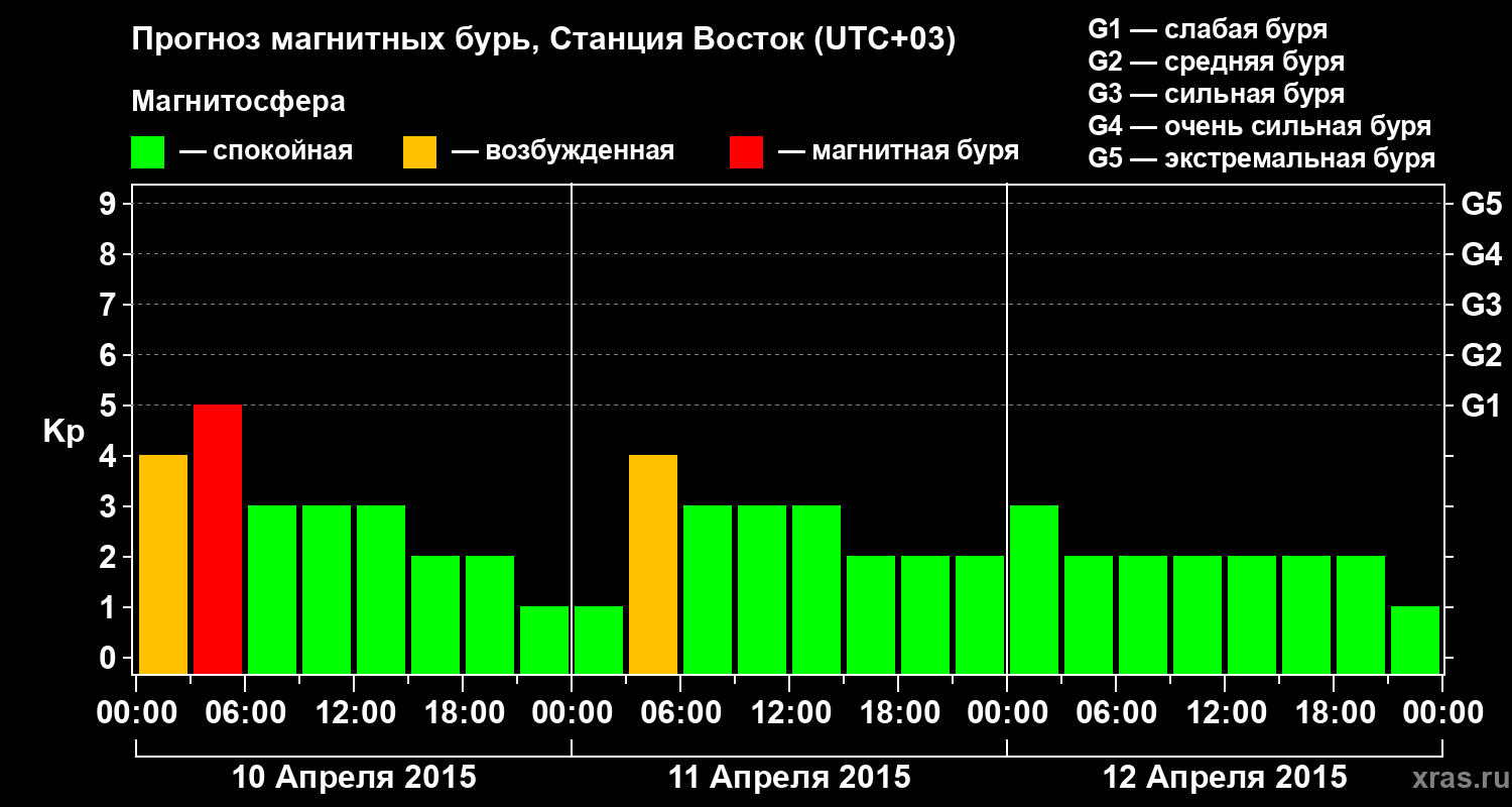 Прогноз магнитных бурь локации Станция Восток — 10 апреля 2015 года