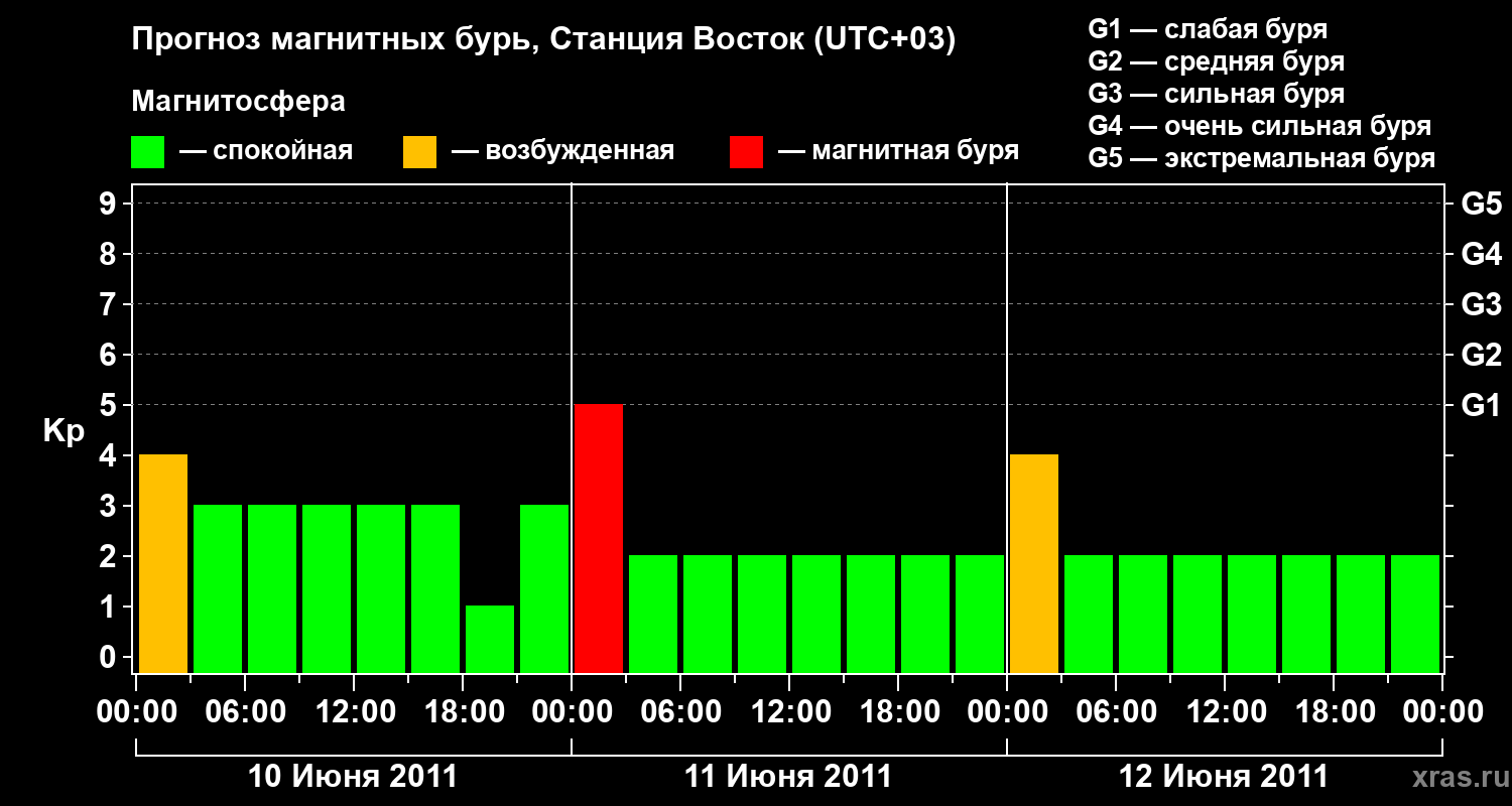 Прогноз магнитных бурь локации Станция Восток — 10 июня 2011 года