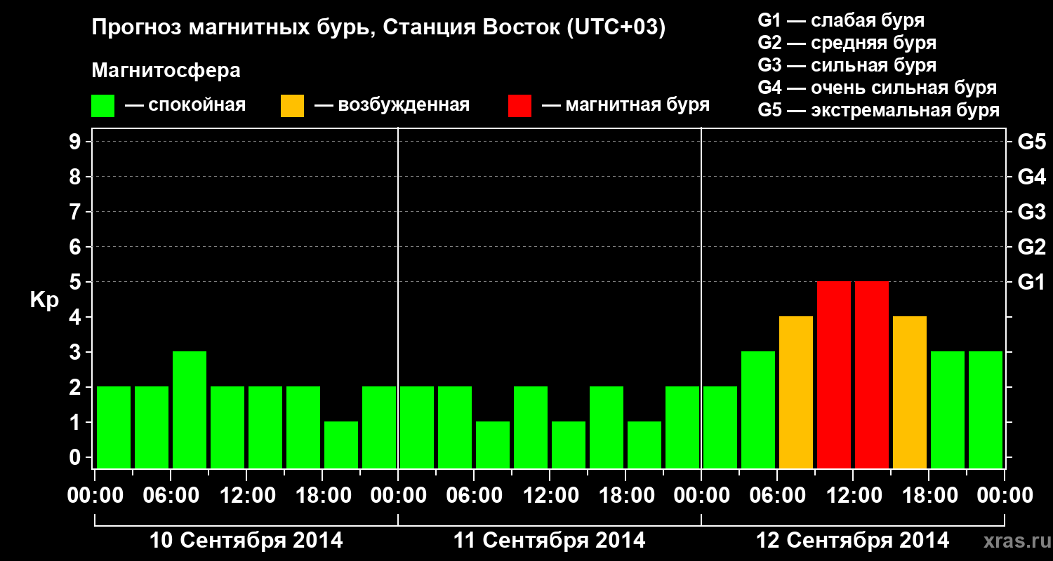 Прогноз магнитных бурь локации Станция Восток — 10 сентября 2014 года