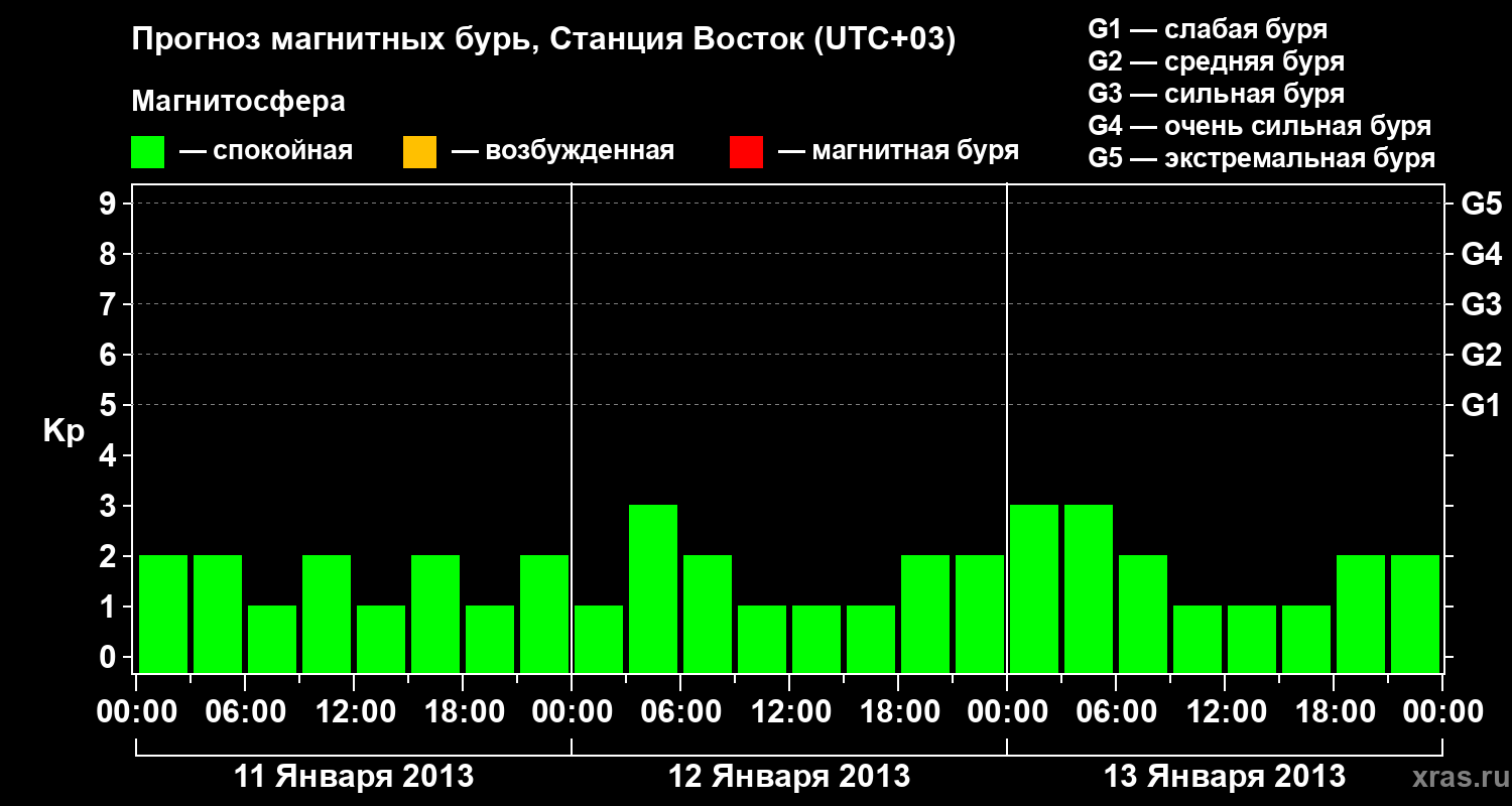 Прогноз магнитных бурь локации Станция Восток — 11 января 2013 года