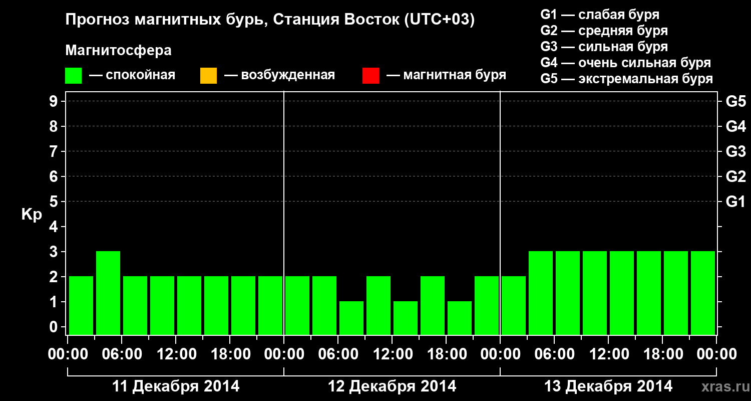 Прогноз магнитных бурь локации Станция Восток — 11 декабря 2014 года