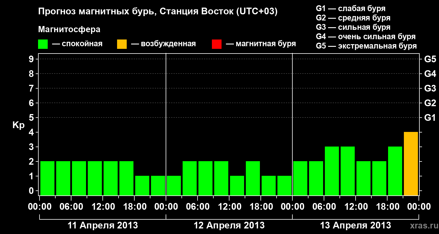 Прогноз магнитных бурь локации Станция Восток — 11 апреля 2013 года