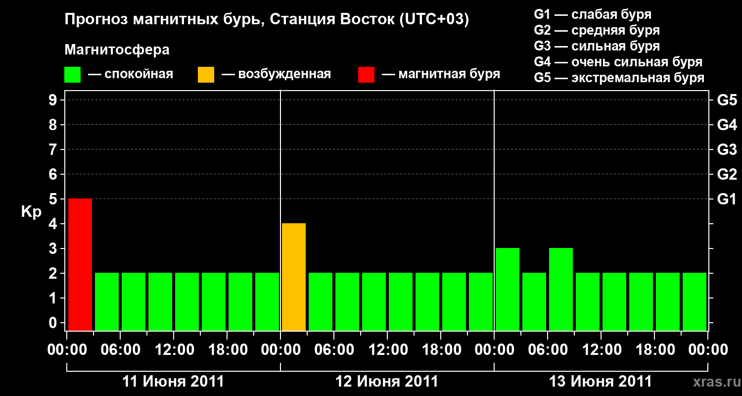 Прогноз магнитных бурь локации Станция Восток — 11 июня 2011 года