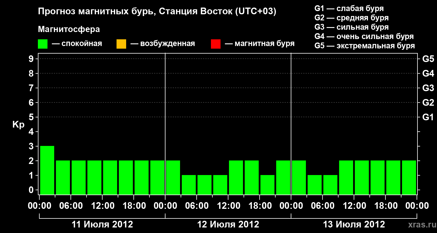 Прогноз магнитных бурь локации Станция Восток — 11 июля 2012 года