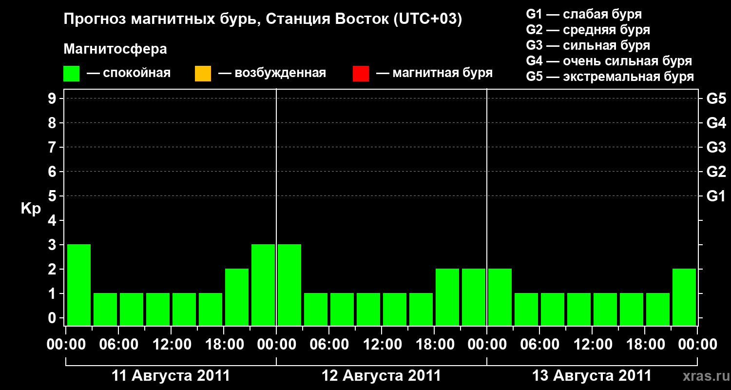 Прогноз магнитных бурь локации Станция Восток — 11 августа 2011 года