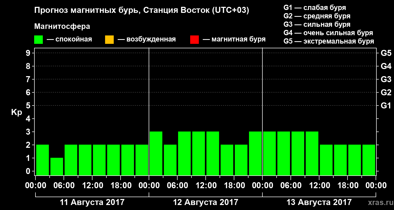 Прогноз магнитных бурь локации Станция Восток — 11 августа 2017 года