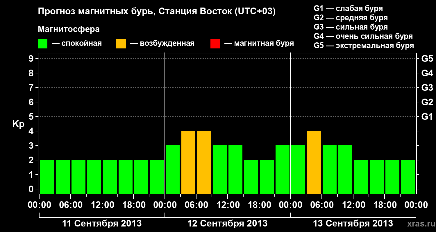 Прогноз магнитных бурь локации Станция Восток — 11 сентября 2013 года