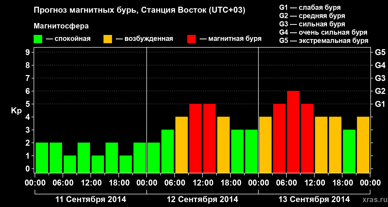 Прогноз магнитных бурь локации Станция Восток — 11 сентября 2014 года