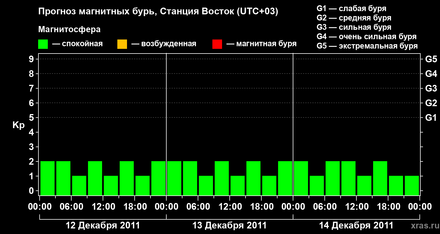 Прогноз магнитных бурь локации Станция Восток — 12 декабря 2011 года