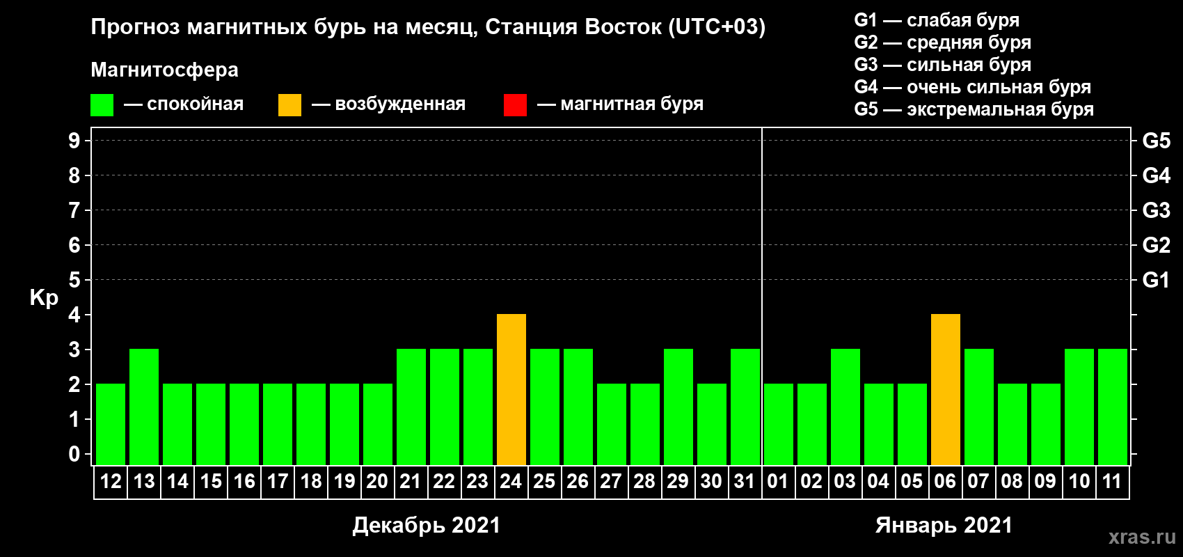 Прогноз магнитных бурь локации Станция Восток — 12 декабря 2020 года