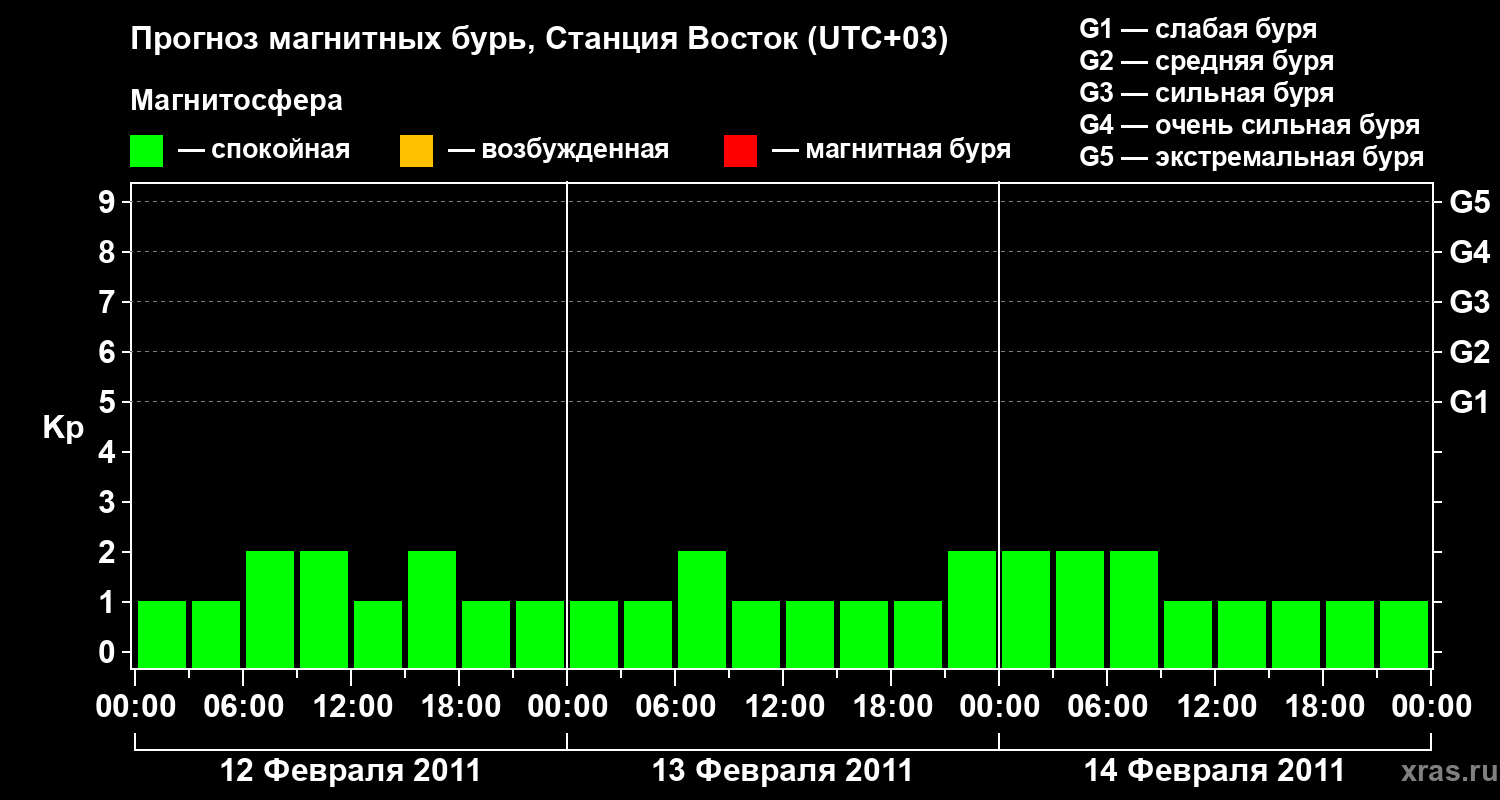 Прогноз магнитных бурь локации Станция Восток — 12 февраля 2011 года