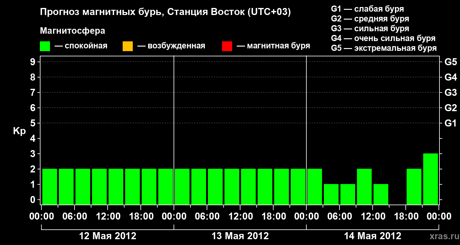 Прогноз магнитных бурь локации Станция Восток — 12 мая 2012 года