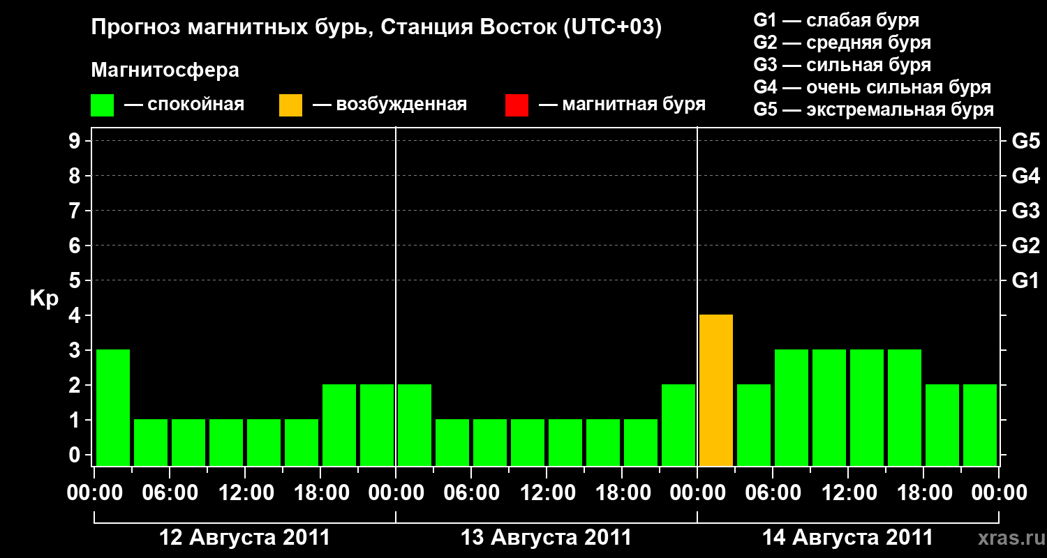 Прогноз магнитных бурь локации Станция Восток — 12 августа 2011 года