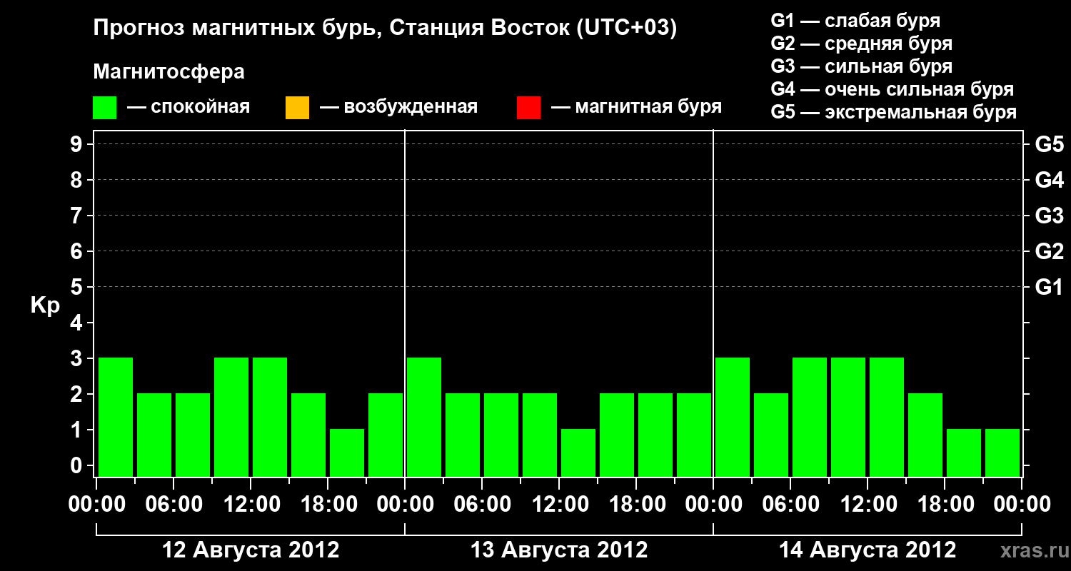 Прогноз магнитных бурь локации Станция Восток — 12 августа 2012 года