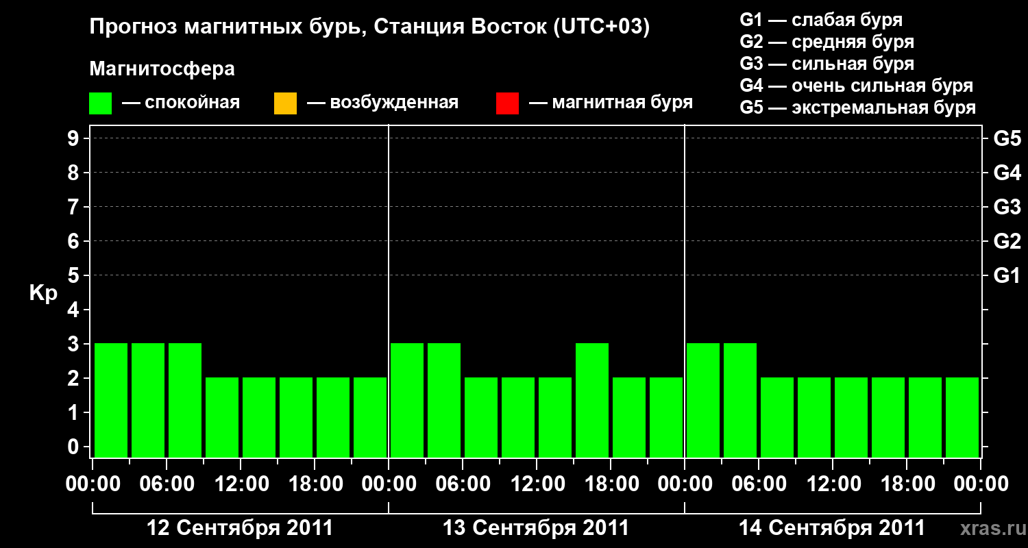 Прогноз магнитных бурь локации Станция Восток — 12 сентября 2011 года