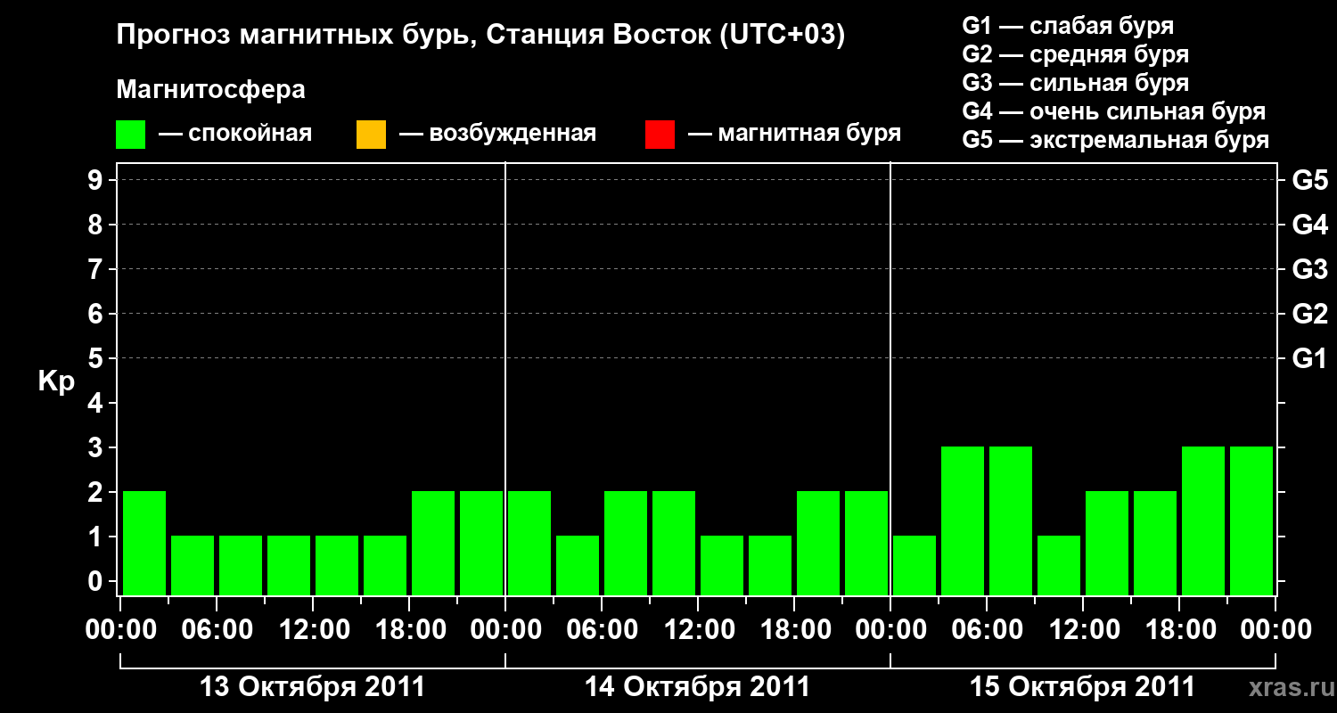Прогноз магнитных бурь локации Станция Восток — 13 октября 2011 года