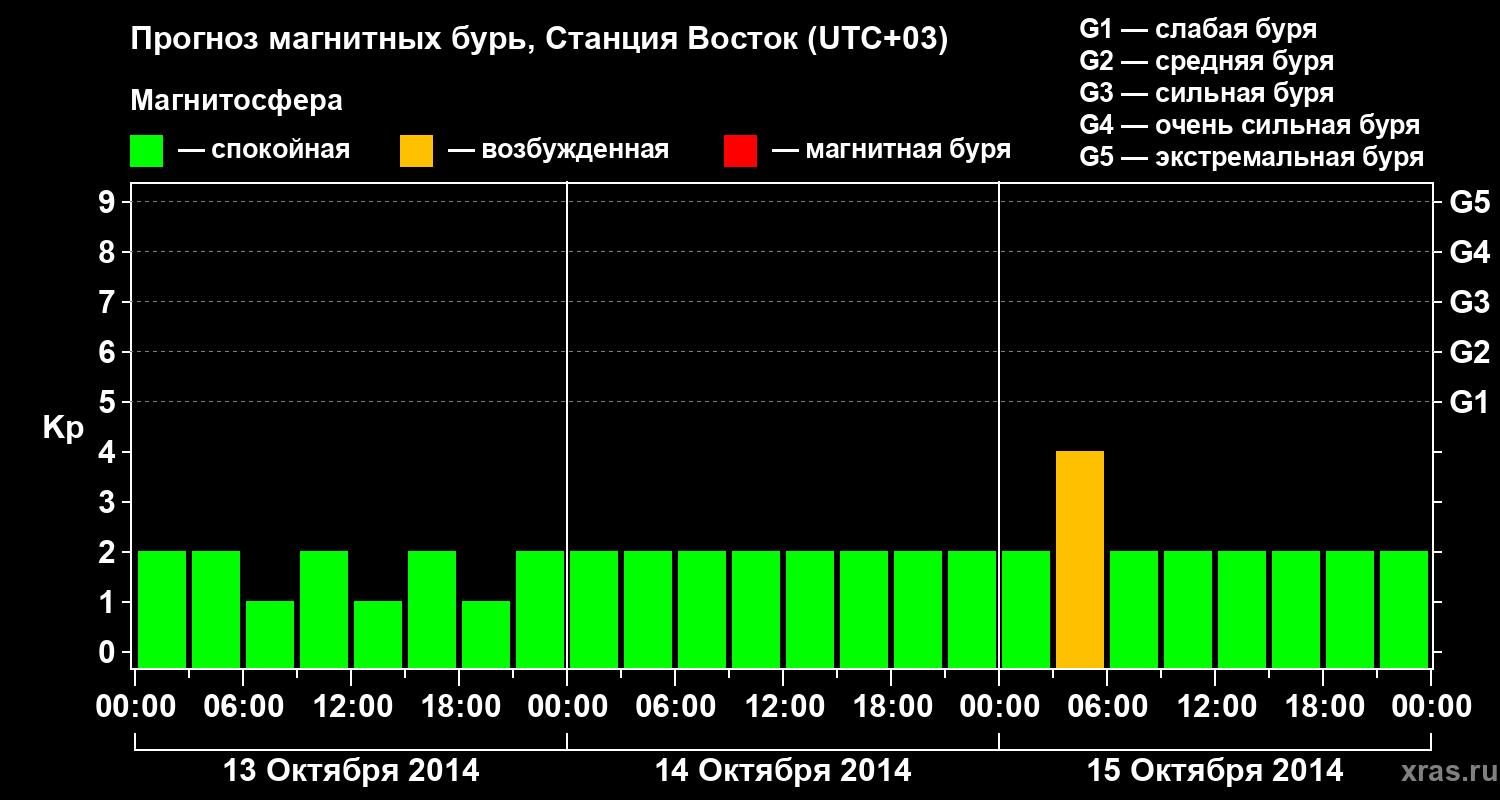 Прогноз магнитных бурь локации Станция Восток — 13 октября 2014 года