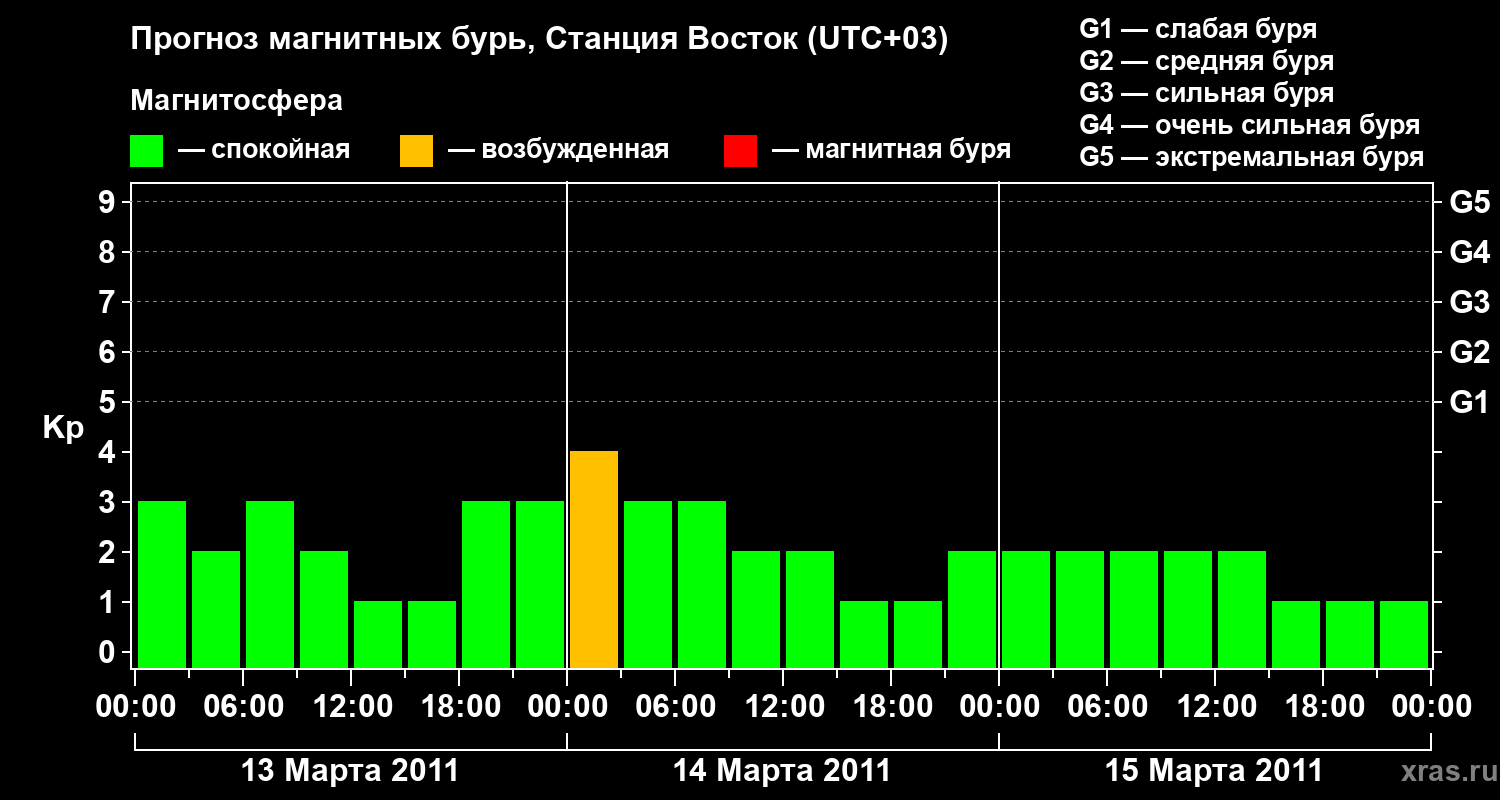 Прогноз магнитных бурь локации Станция Восток — 13 марта 2011 года
