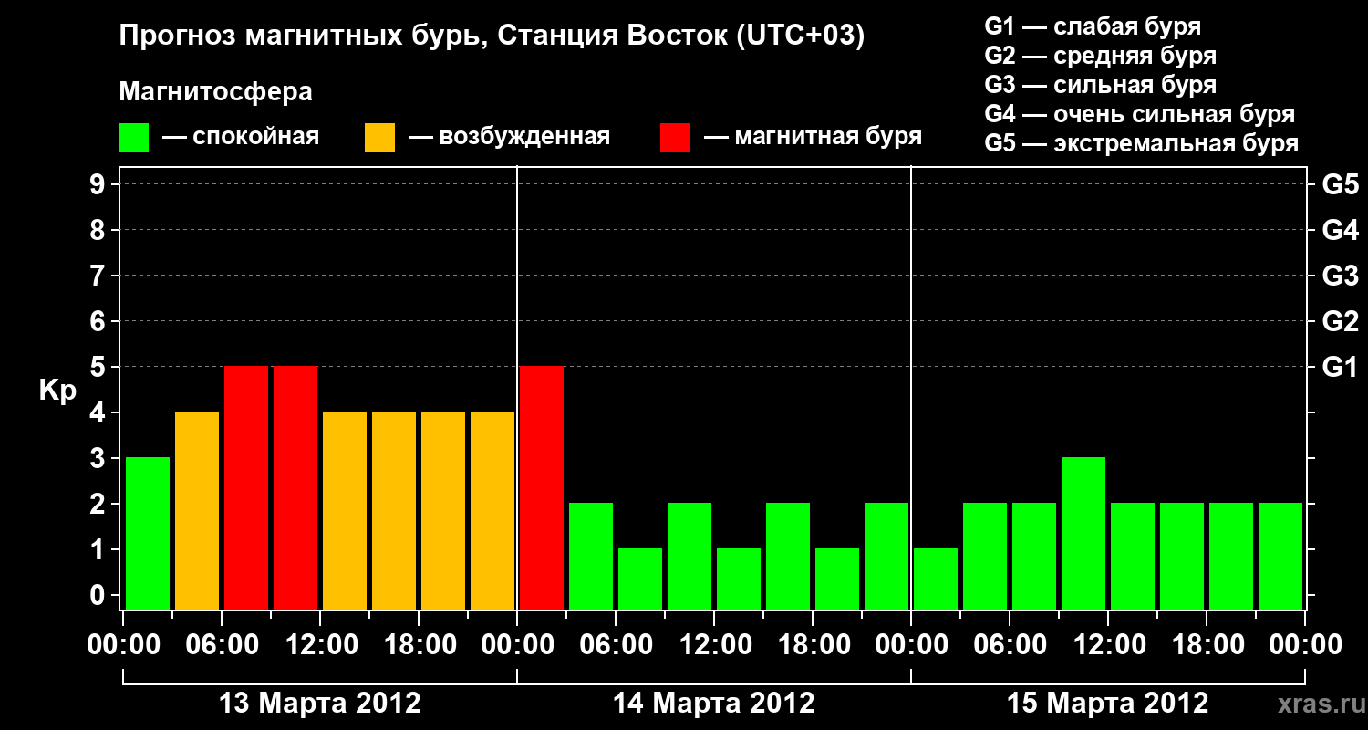 Прогноз магнитных бурь локации Станция Восток — 13 марта 2012 года