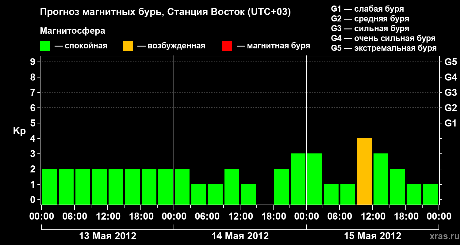 Прогноз магнитных бурь локации Станция Восток — 13 мая 2012 года