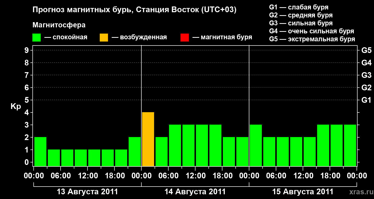 Прогноз магнитных бурь локации Станция Восток — 13 августа 2011 года
