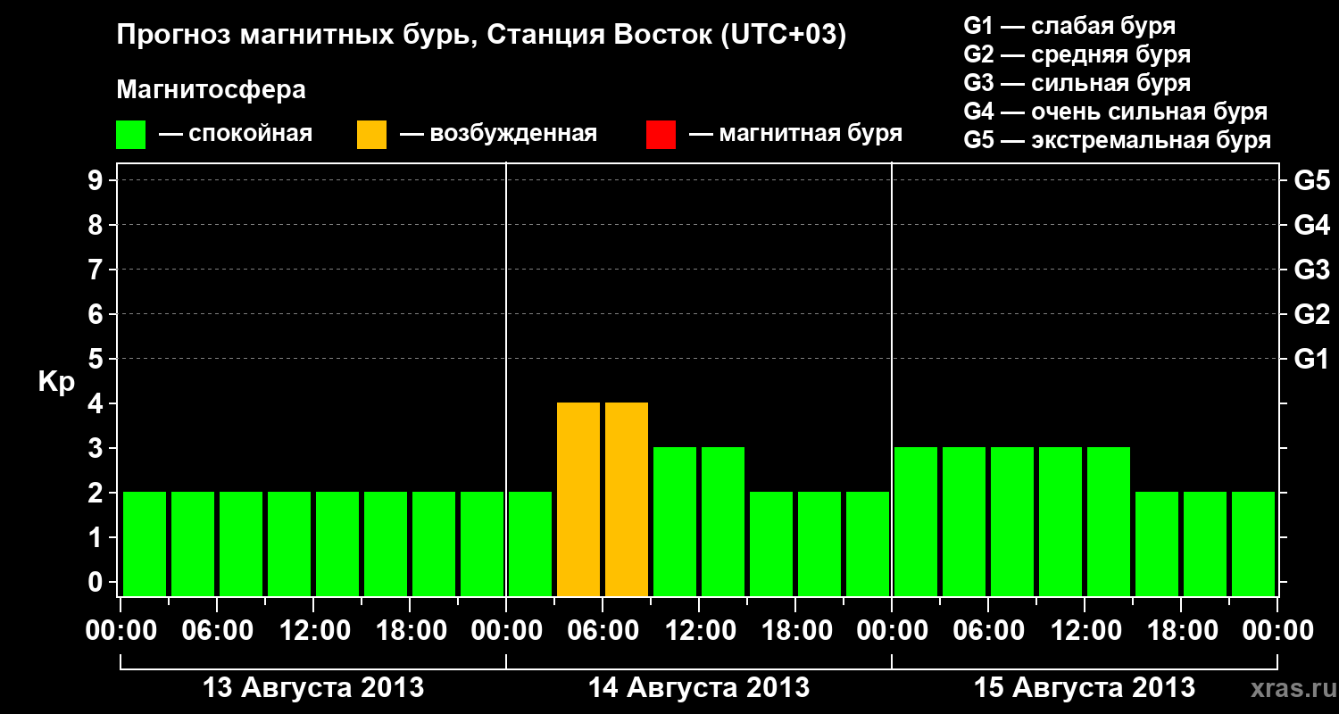 Прогноз магнитных бурь локации Станция Восток — 13 августа 2013 года
