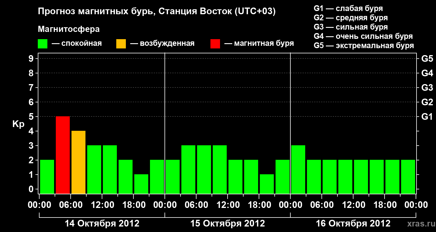 Прогноз магнитных бурь локации Станция Восток — 14 октября 2012 года