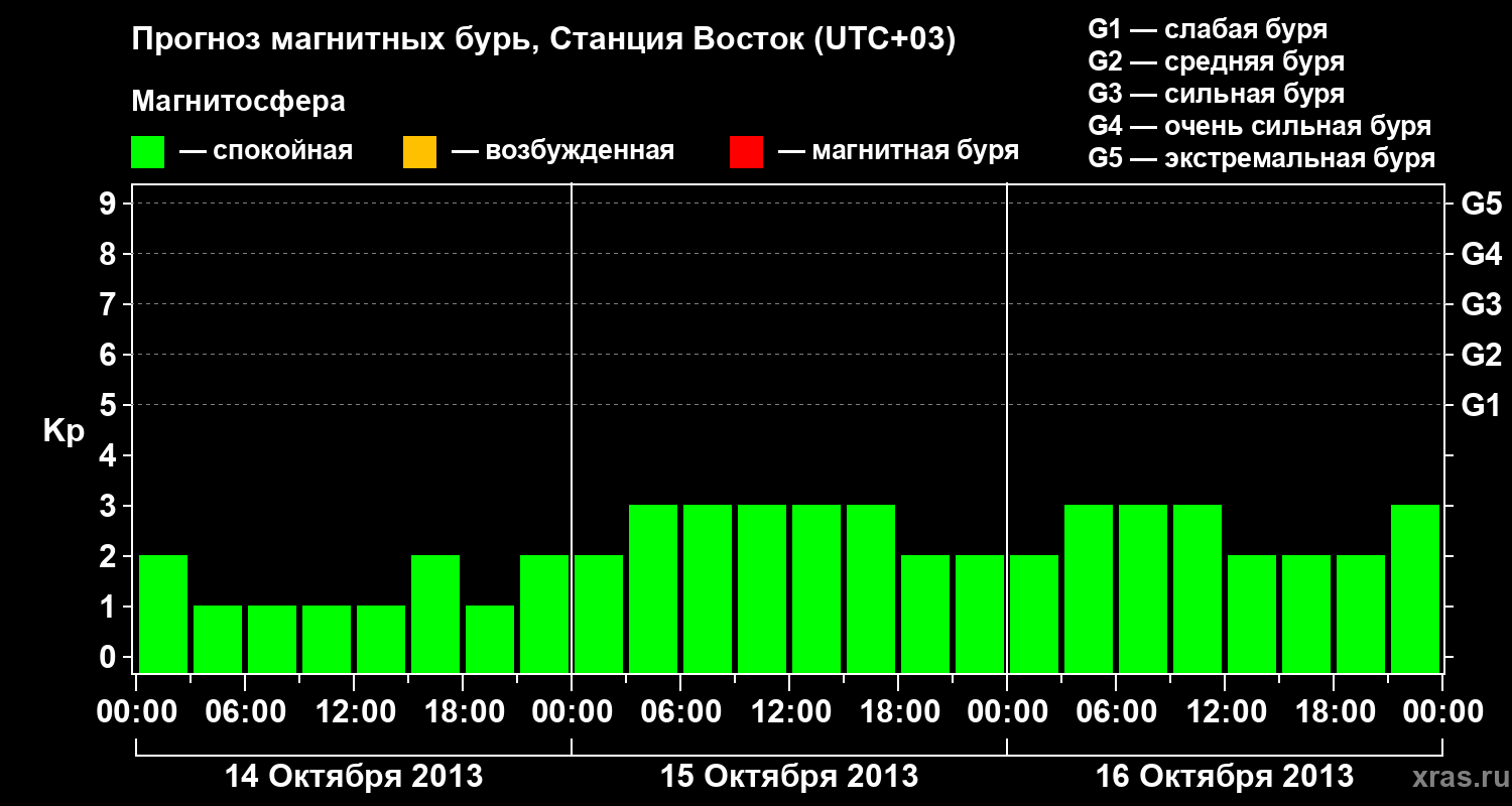 Прогноз магнитных бурь локации Станция Восток — 14 октября 2013 года