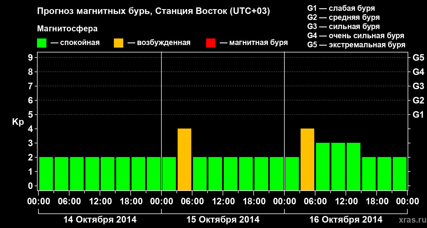 Прогноз магнитных бурь локации Станция Восток — 14 октября 2014 года