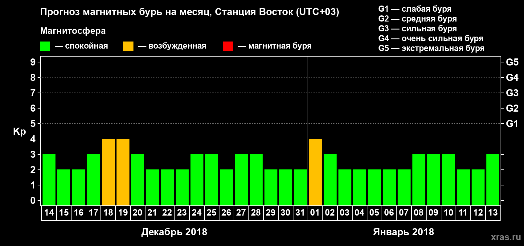 Прогноз магнитных бурь локации Станция Восток — 14 декабря 2017 года