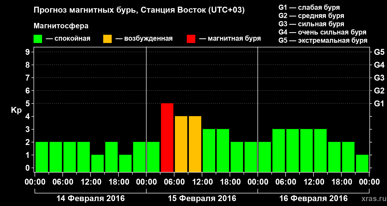 Прогноз магнитных бурь локации Станция Восток — 14 февраля 2016 года
