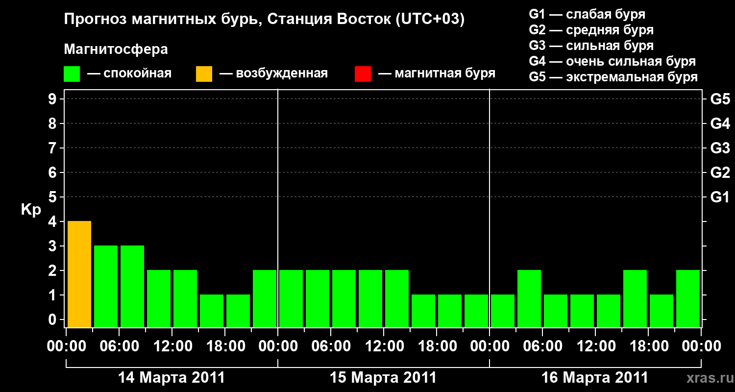 Прогноз магнитных бурь локации Станция Восток — 14 марта 2011 года