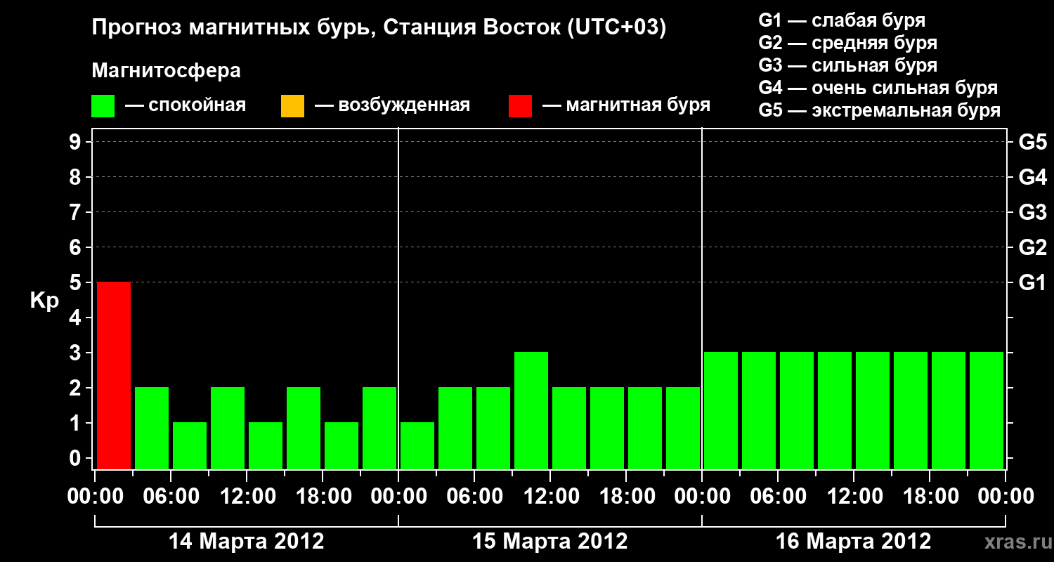 Прогноз магнитных бурь локации Станция Восток — 14 марта 2012 года