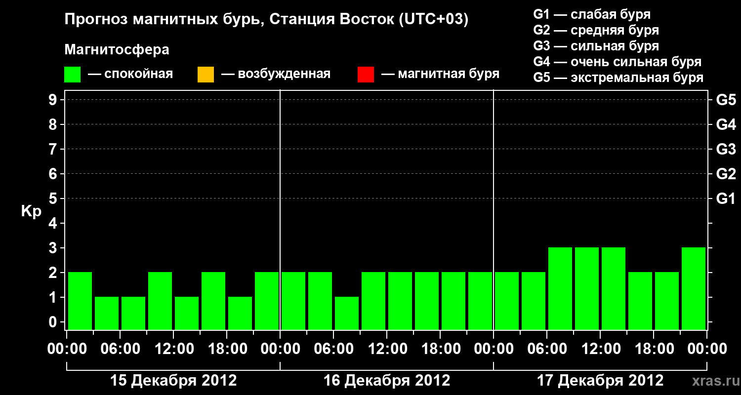 Прогноз магнитных бурь локации Станция Восток — 15 декабря 2012 года