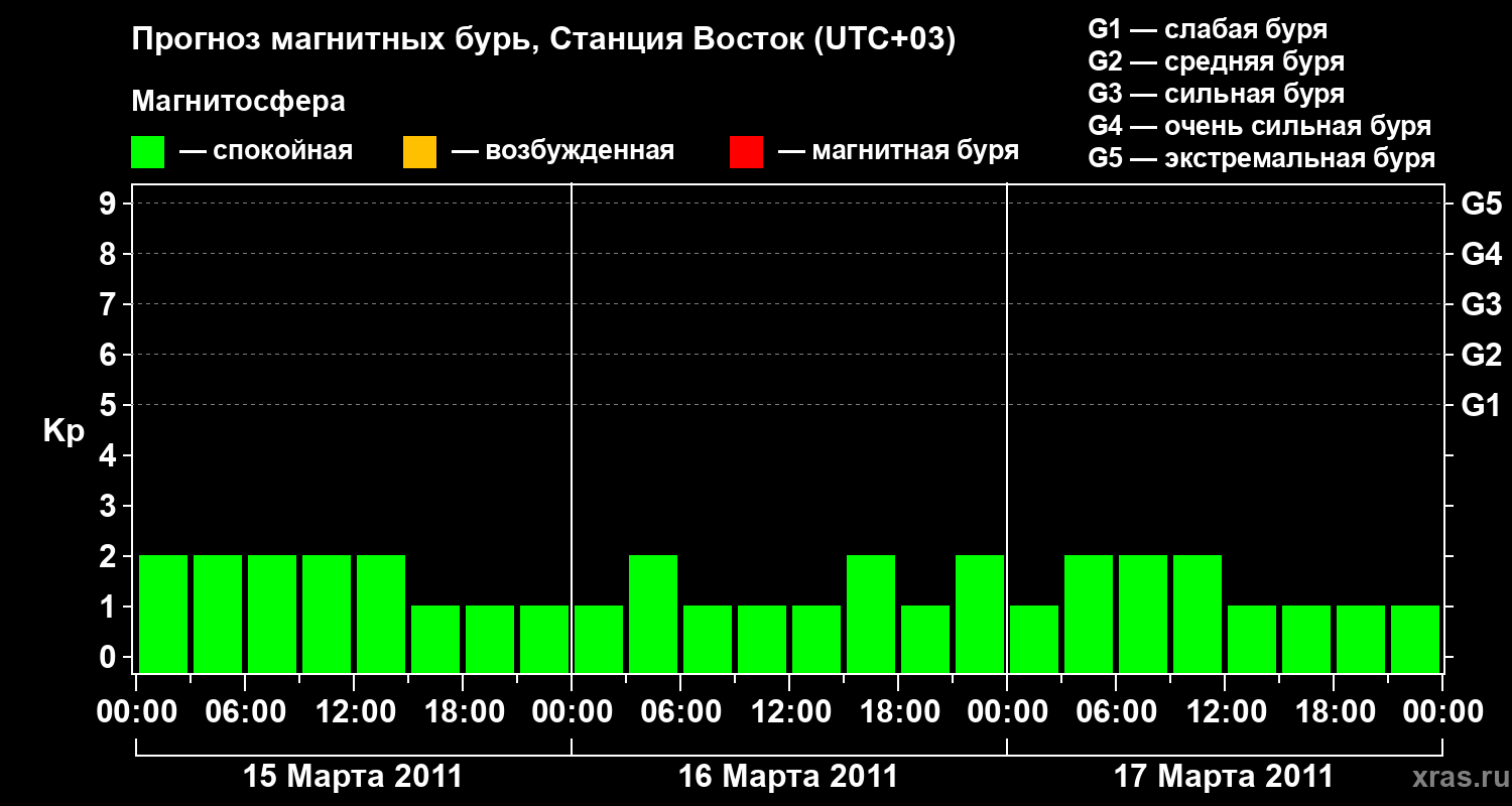 Прогноз магнитных бурь локации Станция Восток — 15 марта 2011 года