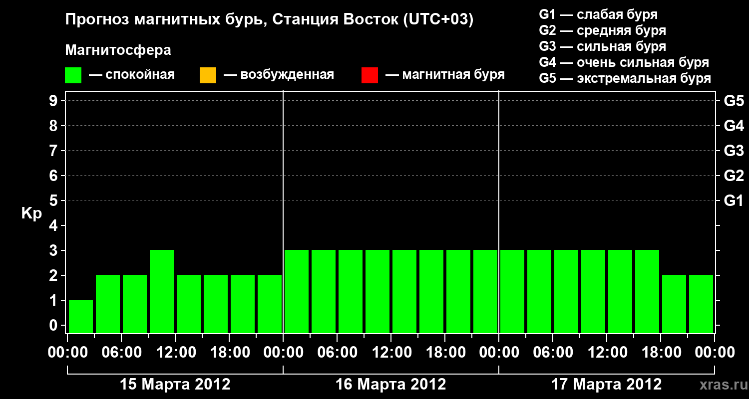 Прогноз магнитных бурь локации Станция Восток — 15 марта 2012 года