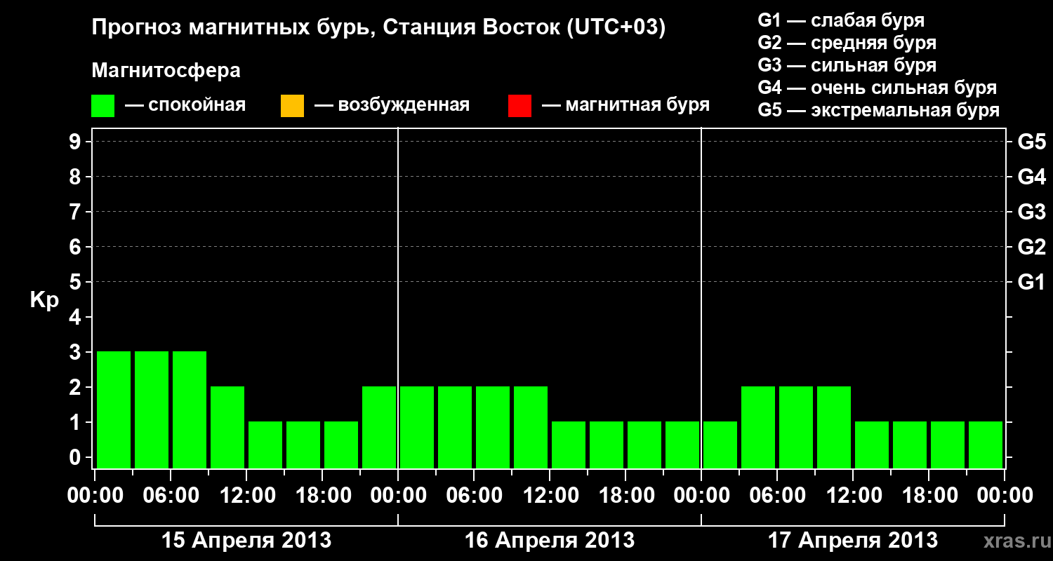 Прогноз магнитных бурь локации Станция Восток — 15 апреля 2013 года