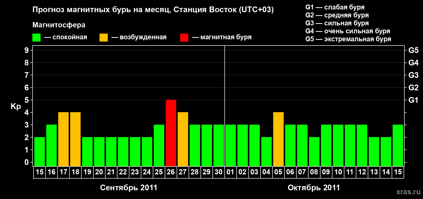 Прогноз магнитных бурь локации Станция Восток — 15 сентября 2011 года