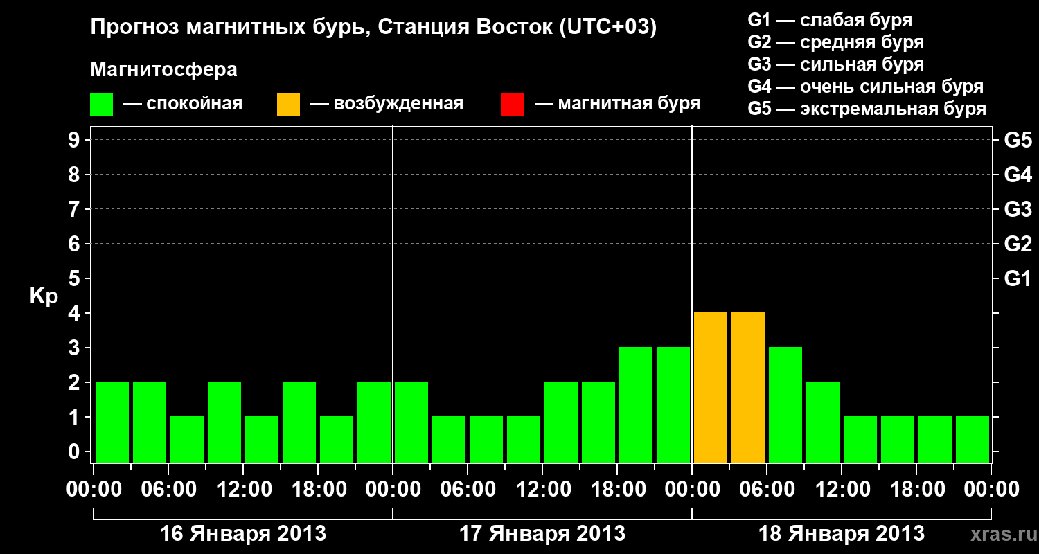 Прогноз магнитных бурь локации Станция Восток — 16 января 2013 года