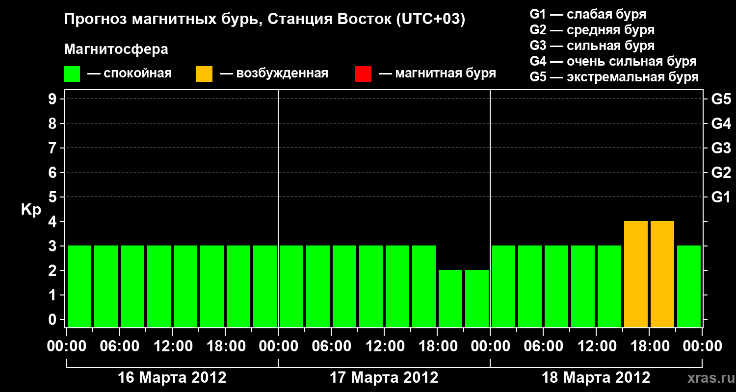 Прогноз магнитных бурь локации Станция Восток — 16 марта 2012 года
