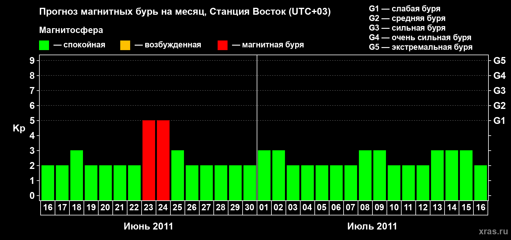 Прогноз магнитных бурь локации Станция Восток — 16 июня 2011 года