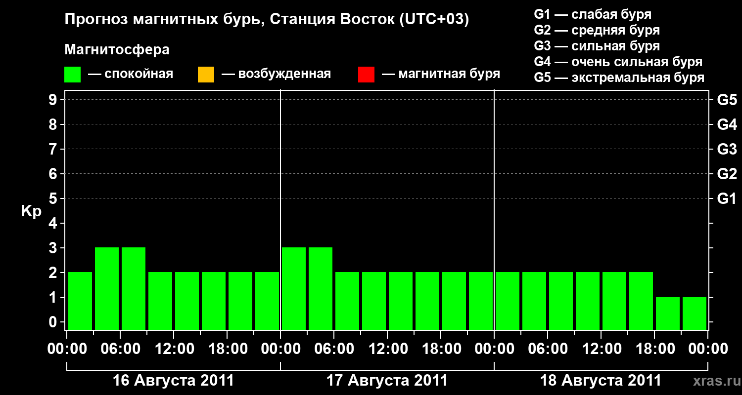 Прогноз магнитных бурь локации Станция Восток — 16 августа 2011 года