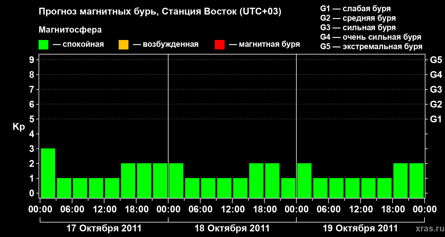 Прогноз магнитных бурь локации Станция Восток — 17 октября 2011 года