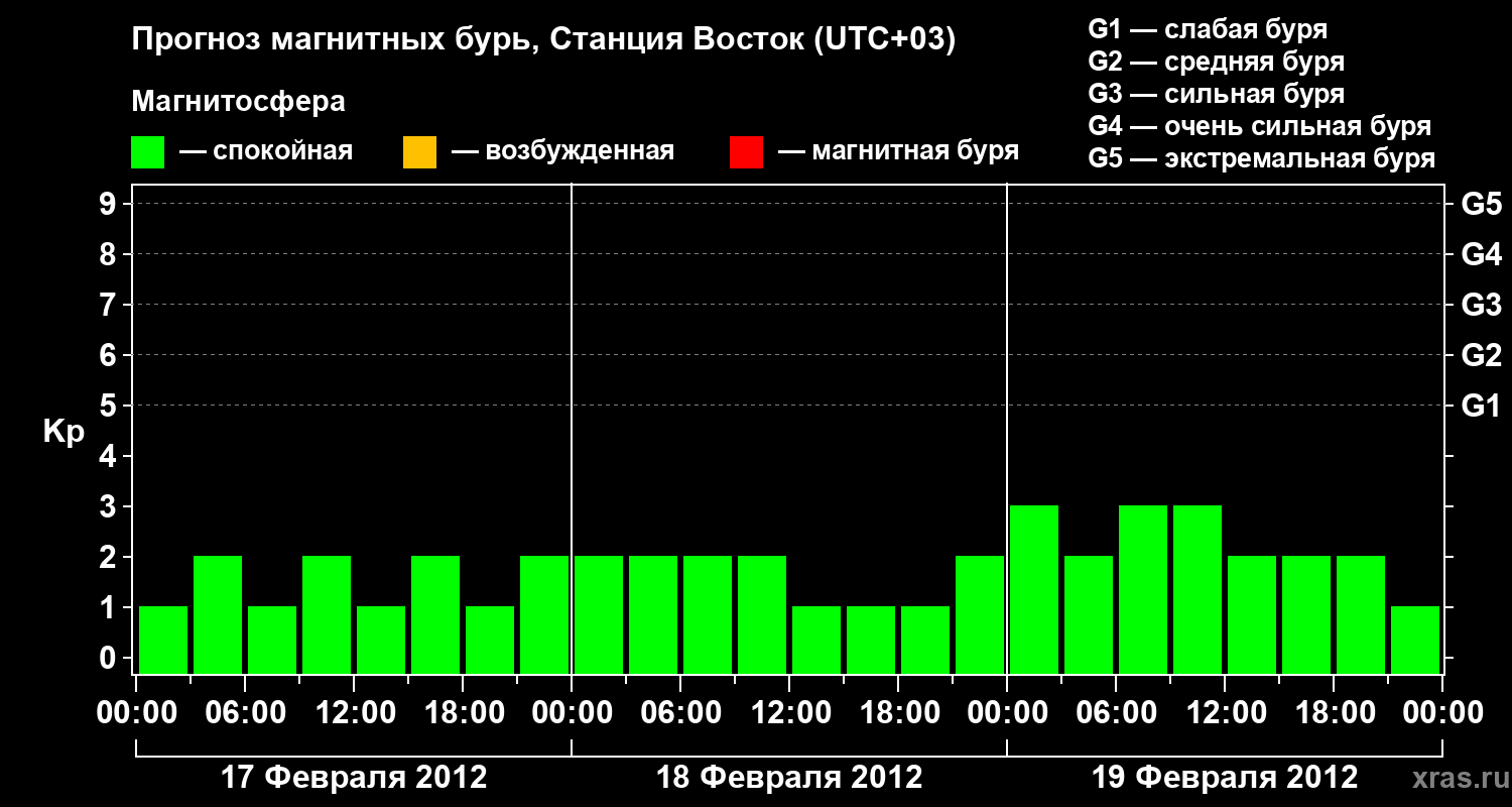 Прогноз магнитных бурь локации Станция Восток — 17 февраля 2012 года