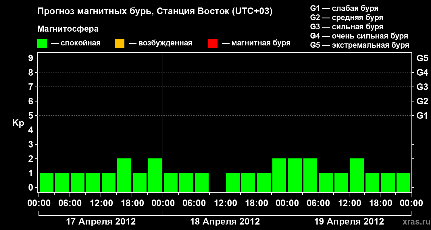 Прогноз магнитных бурь локации Станция Восток — 17 апреля 2012 года