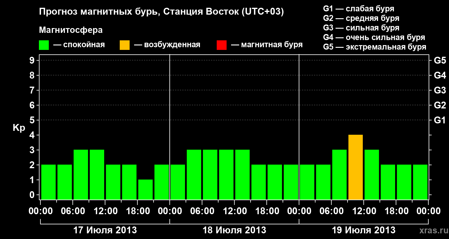 Прогноз магнитных бурь локации Станция Восток — 17 июля 2013 года