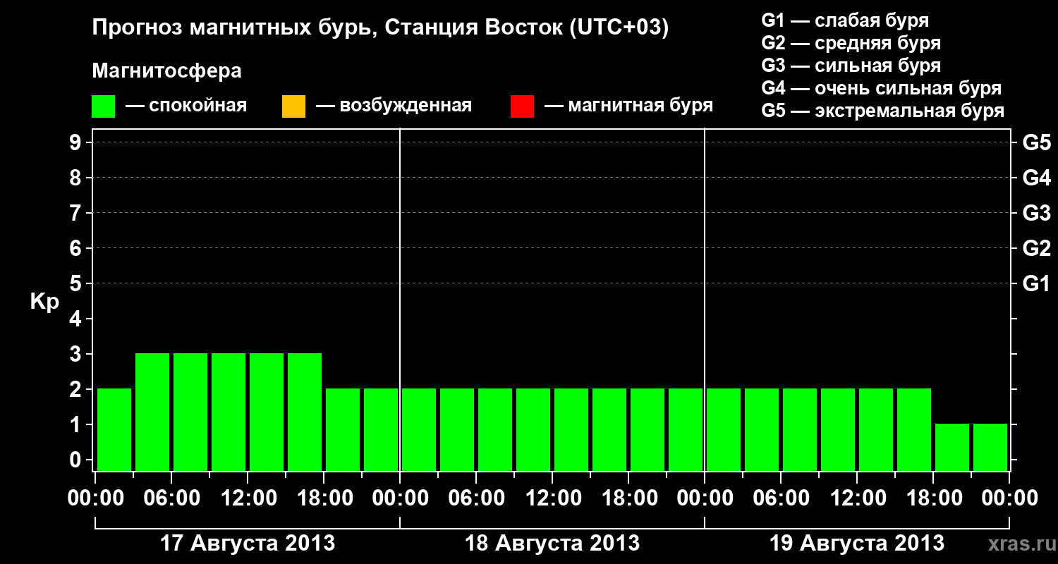 Прогноз магнитных бурь локации Станция Восток — 17 августа 2013 года