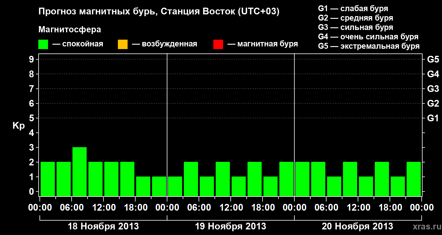 Прогноз магнитных бурь локации Станция Восток — 18 ноября 2013 года