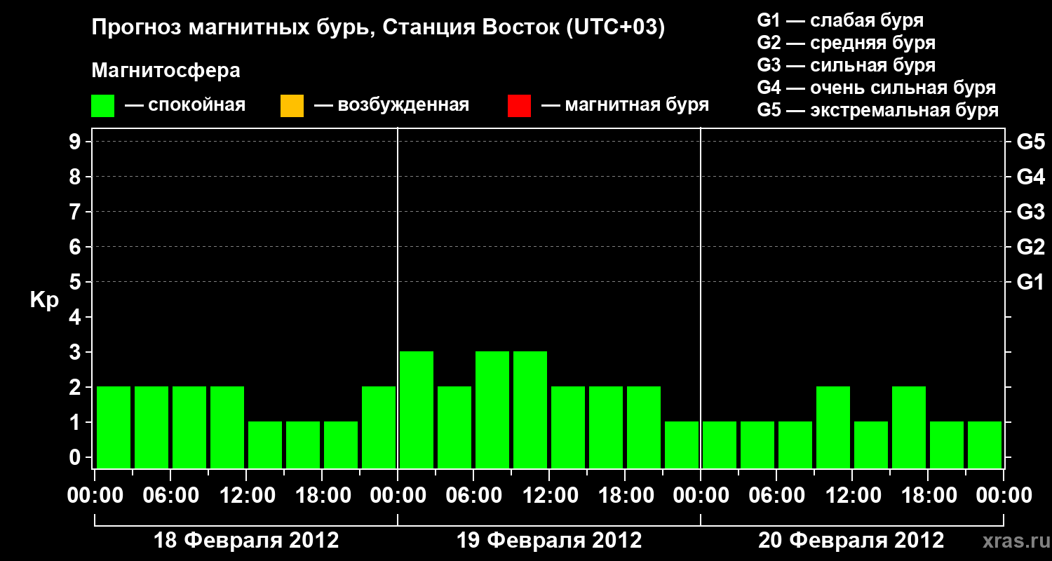 Прогноз магнитных бурь локации Станция Восток — 18 февраля 2012 года